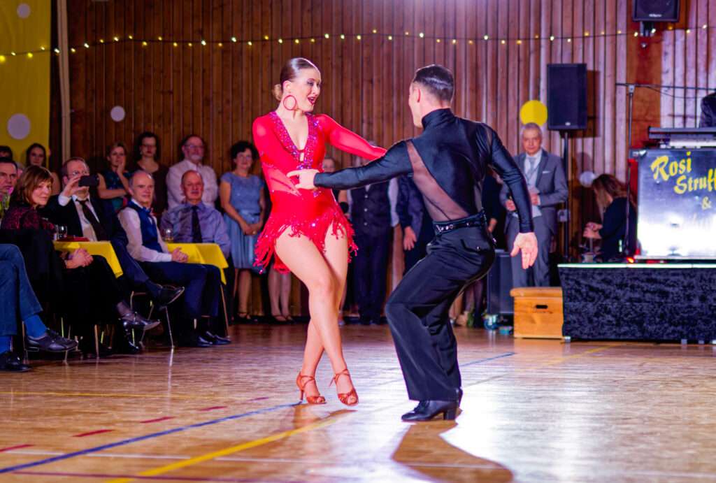 Der Höhepunkt eines jeden TVE-Balls ist der Auftritt eines Profi-Tanzpaares. In diesem Jahr durften sich die Gäste über Daniela Paul und Kristof Zsolt freuen, die zahlreiche Titel vorweisen können, unter anderem als süddeutsche Meister der Seniorenklasse I. Nachdem ihr Auftritt schon zweimal verschoben werden musste, präsentierten sie diesmal ihr komplettes Programm in Standard und Latein. Für ihre beeindruckende Show erhielten sie lang anhaltenden Applaus.